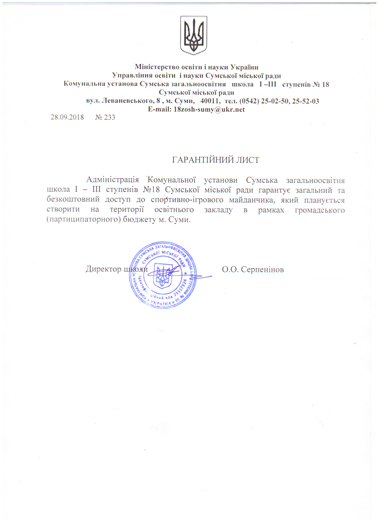 Але, напривеликий жаль, на території школи № 18 на даний час не має можливості виховувати та тренувати майбутніх олімпійців, оскільки відсутні для цього умови.
